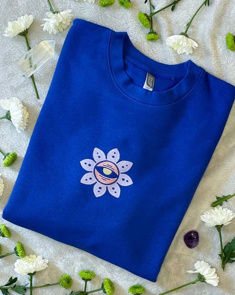 This piece was inspired by nature, its relationship with humans, and all creatures. The birds are a central theme here; they represent the intimacy animals share, reminding us to connect in the same way. The eyes bring in a soft human element, watchful yet gentle, protective, yet respectful of nature and its cycles.