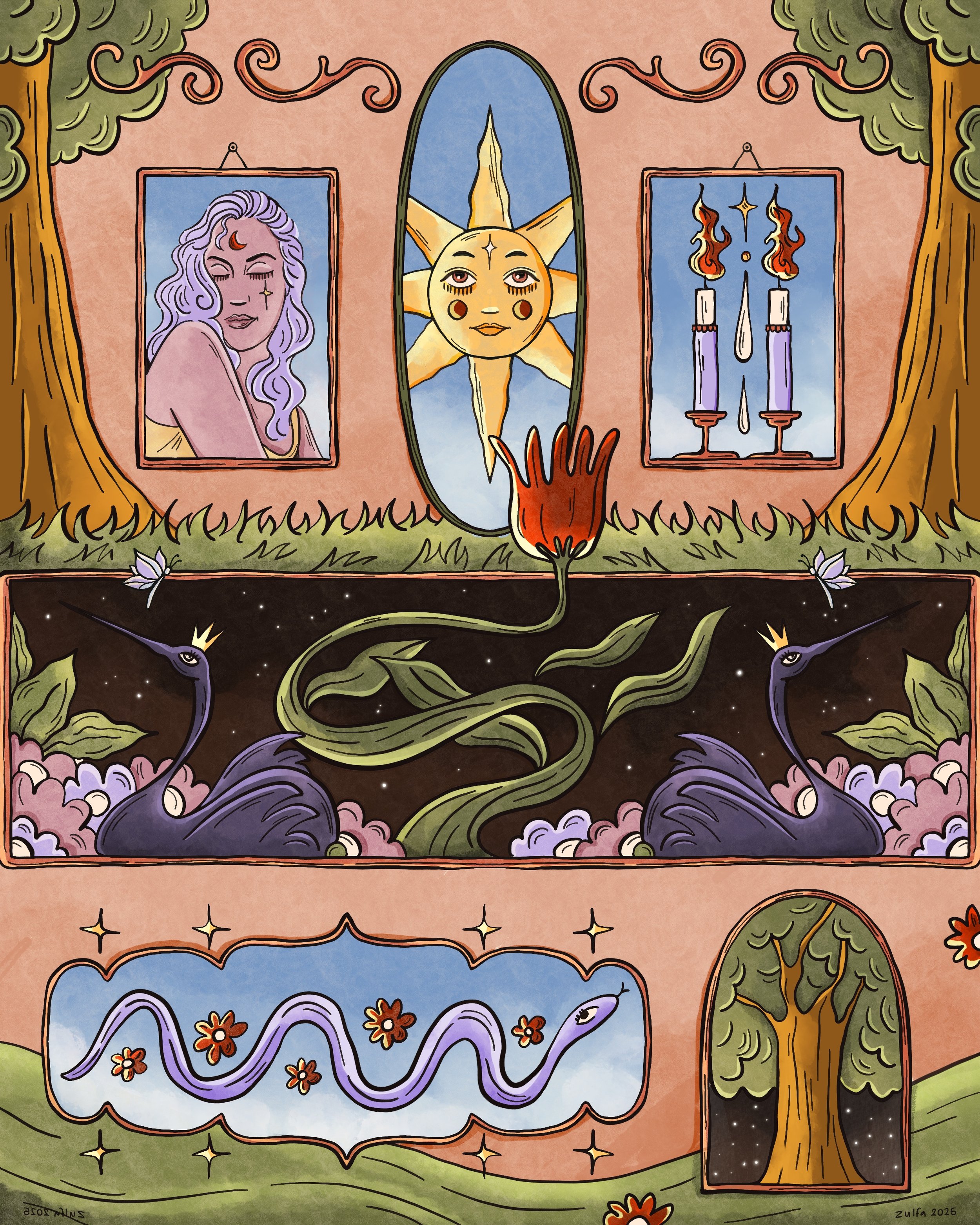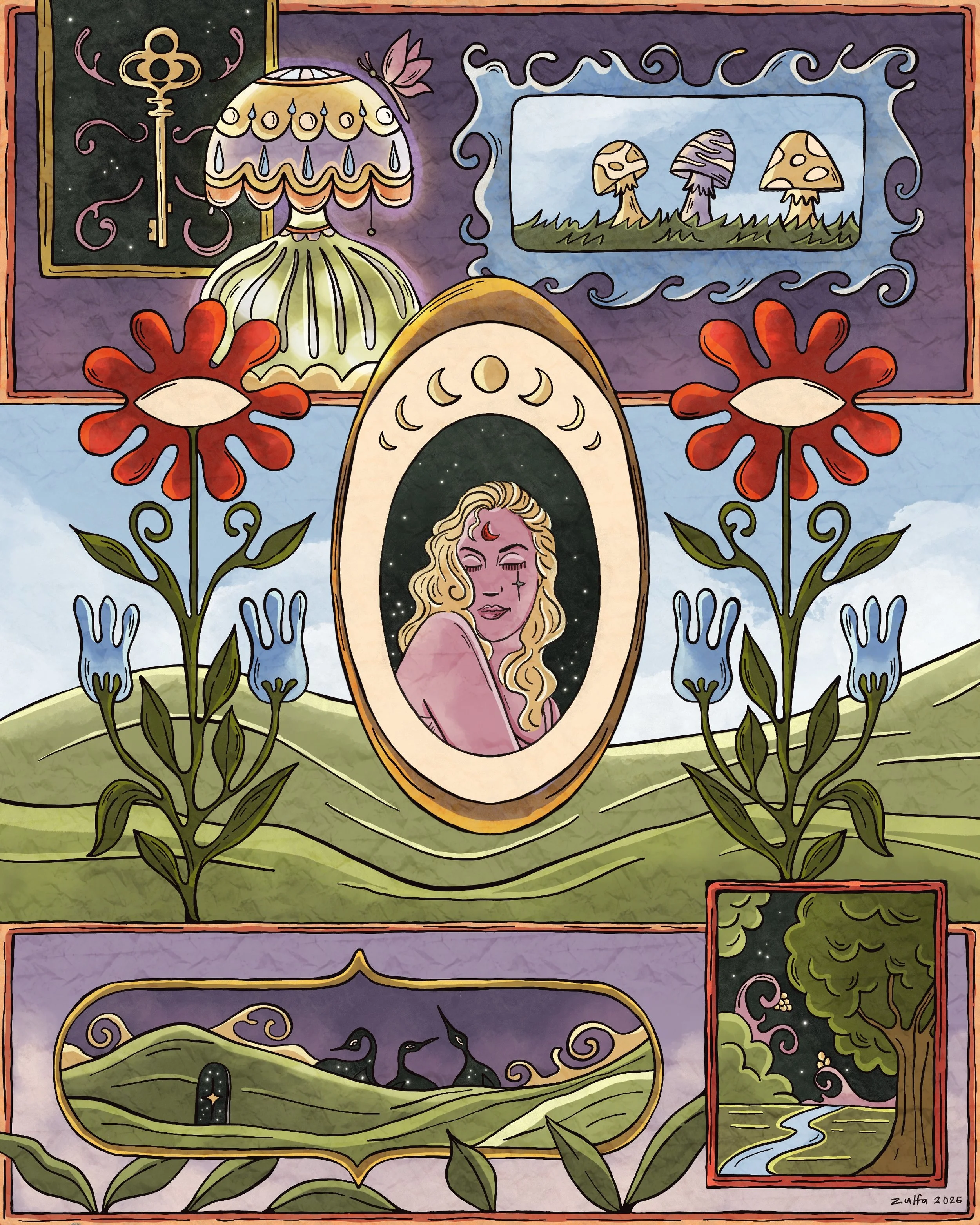 Zulfa Ishak is an author and illustrator from Maryland, creating art that explores spirituality, self-discovery, and the quiet transformations of the soul. Her work honors the lost and forgotten parts of ourselves, illuminating the magic found in the journey within.